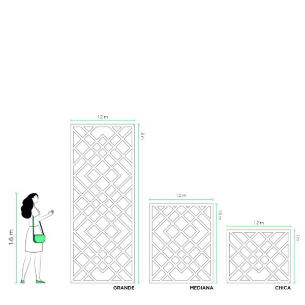 Chica: 1.2 x 1m Mediana: 1.2 x 1.52m Grande: 1.2 x 3m